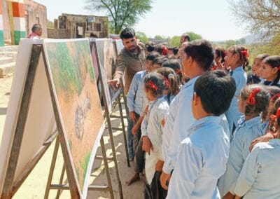 This is the core pillar of the Dieter & Liz Gutmann Tiger Conservation Program, and the scope includes 65 villages in and around the Ranthambhore Tiger Reserve in Sawai Madhopur district. The methodology here entails the identification of high and low-priority villages in terms of anthropogenic pressure, the development of specialized awareness material, and the training of a mobile team of teachers to impart conservation-relevant education in village schools. Most importantly, this means the communication of the ecological significance of the tiger on a mass scale that is completely unprecedented.